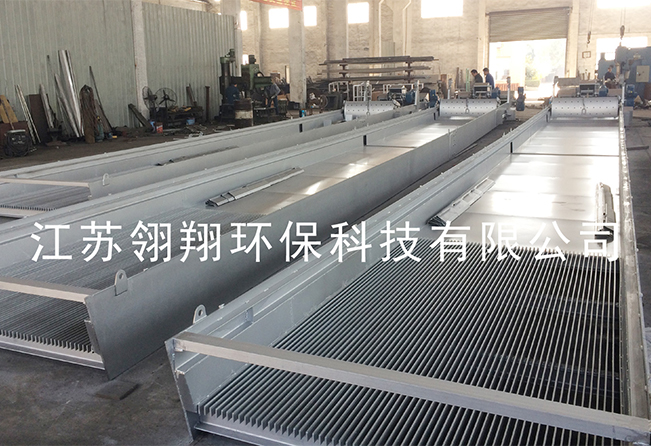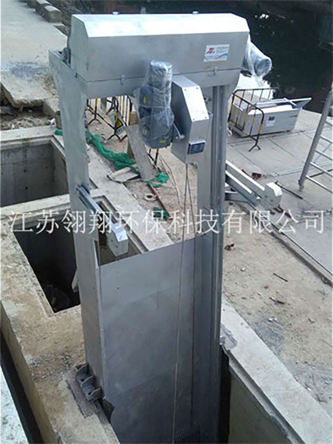 柵底部的砂石。截流的固體污物由齒耙提升至卸污點,靠卸料刮板推出。