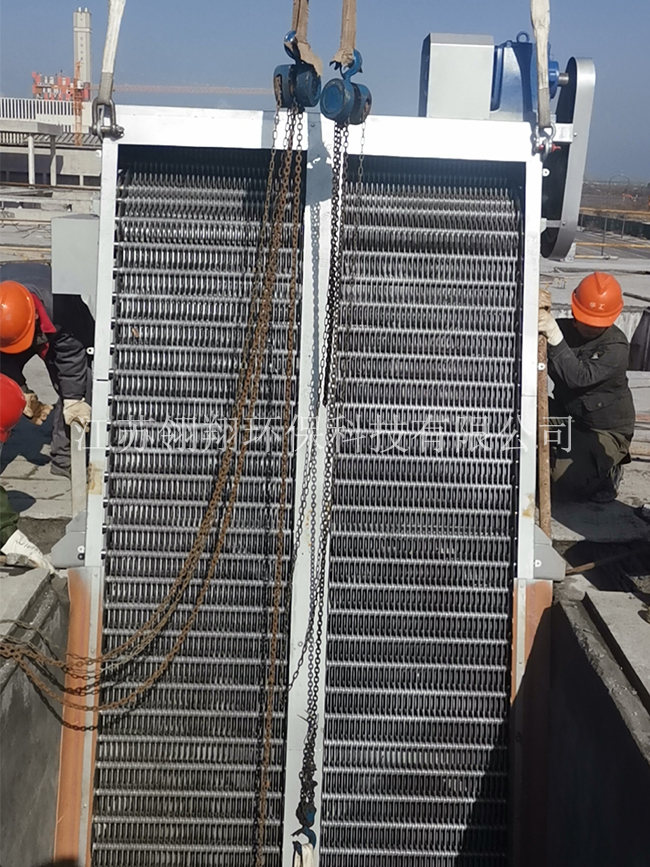 回轉(zhuǎn)式粗格柵是一種可以連續(xù)自動攔截并去除流體中各種形狀雜物的水處理專用設(shè)備,可廣泛地應(yīng)用于城市污水處理。自來水行業(yè)、電廠進水口,同時也可以作為紡織、食品加工、造紙、皮革等行業(yè)廢水處理工藝中的前級篩分設(shè)備,是目前我國先進的固液篩分設(shè)備之一。